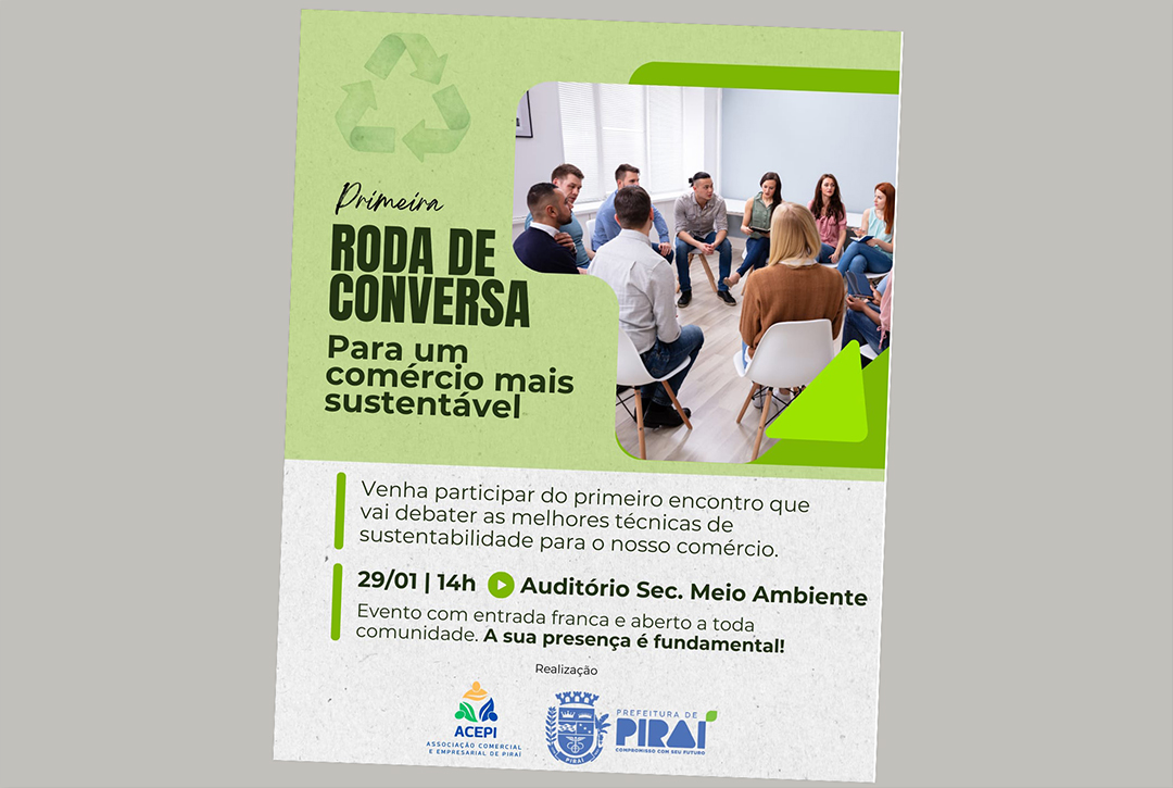 A Associação Comercial e Empresarial de Piraí, em parceria com a Secretaria Municipal de Meio Ambiente de Piraí, irá realizar a primeira “Roda de Conversa” do município voltada ao debate sobre sustentabilidade. O evento tem como objetivo discutir técnicas e práticas sustentáveis aplicáveis ao comércio local e às políticas ambientais do município.